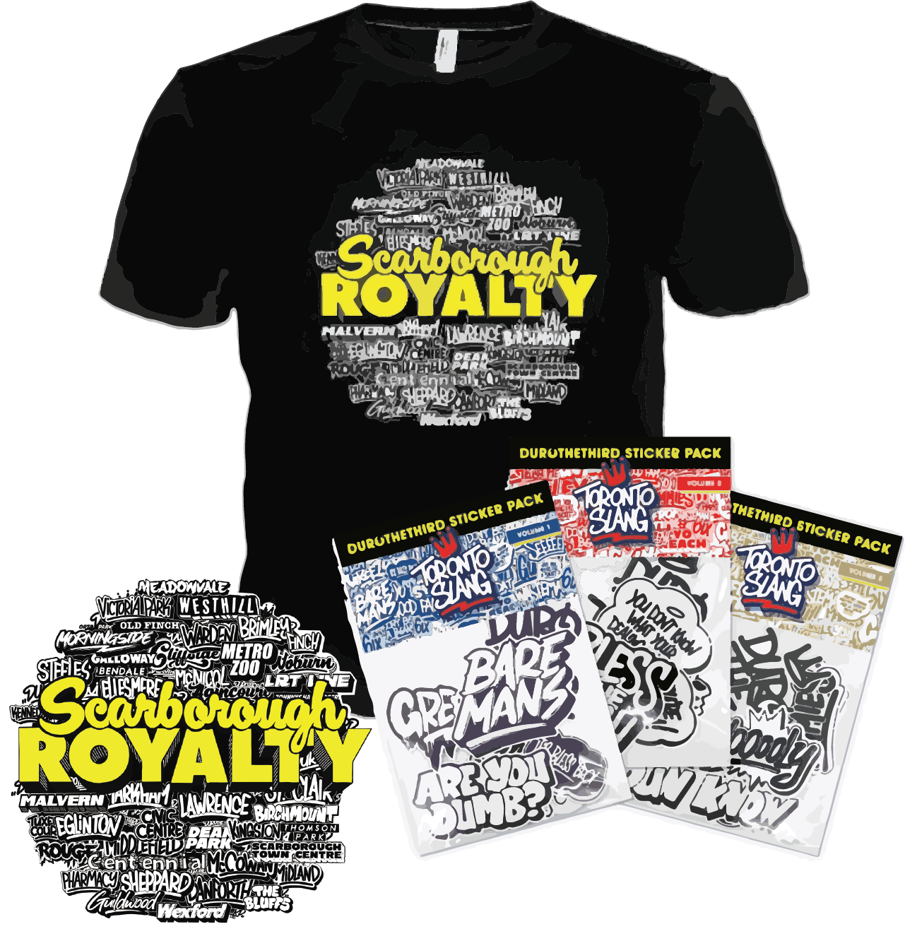 In true bodman styles, get the T-Shirt PLUS never-before seen Scarborough Royalty stickers. But wait, there's more...